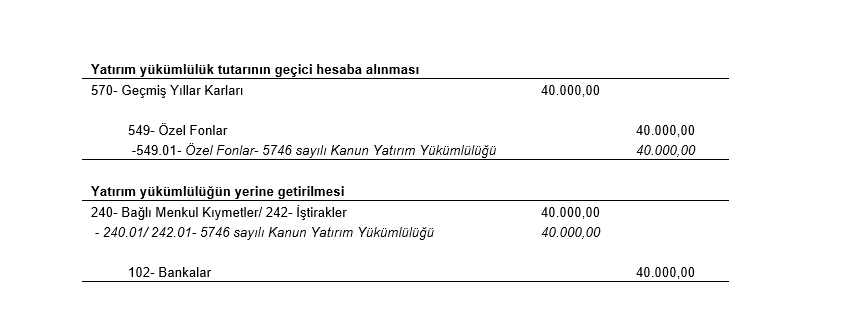 3- Bu %2’lik kısım pasifte geçici bir hesaba aktarılır ve geçici hesabın oluştuğu yılın sonuna kadar yatırım yapılması şarttır.