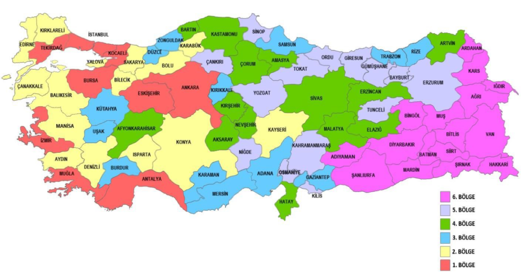 Bölgesel teşvik uygulamasında ülkemiz illeri 6 bölgeye ayrılmıştır. Gelişmişlik düzeylerine göre her bir bölge için sağlanan destek unsurları farklılık göstermektedir. Bahse konu bölgeler ve iller aşağıdaki haritada görülebilir.