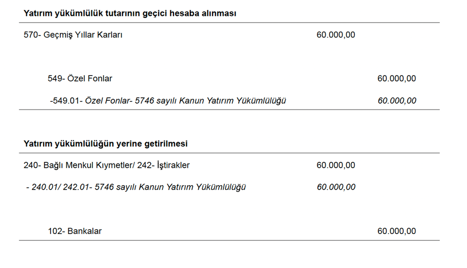 3- Bu %3’lük kısım pasifte geçici bir hesaba aktarılır ve geçici hesabın oluştuğu yılın sonuna kadar yatırım yapılması şarttır.